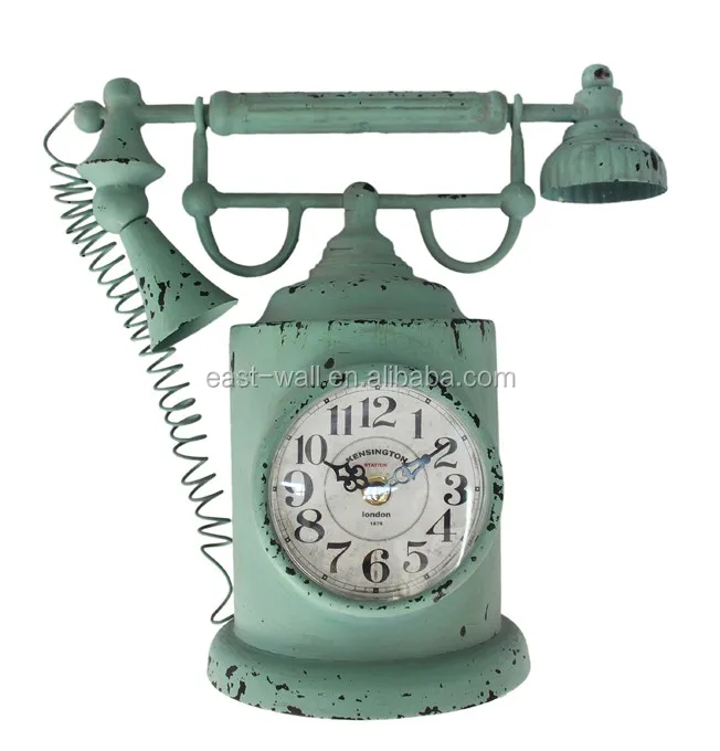 Home Decro Retro Vintage Phone Shaped Metal Table Alarm Clock